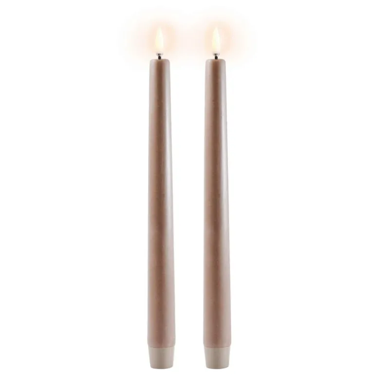 De avsmalnande LED-ljusen från Uyuni Lighting är ett säkert sätt att skapa en varm och inbjudande atmosfär i ditt hem – en sådan som endast det mjukt flimrande ljuset från tända ljus kan skapa. LED-ljusen är övertygande autentiska. De är belagda med äkta stearin och utrustade med Uyunis patenterade 3D-låga som imiterar den fladdrande lågan på ett vanligt ljus, och lyser mjukt med ett varmt och vitt sken.
