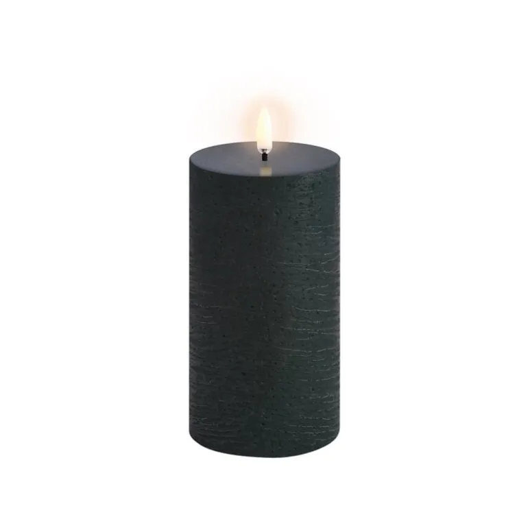 Uyuni Lighting LED blockljus, 7,8 x 15 cm, rustik textur, tallgrön