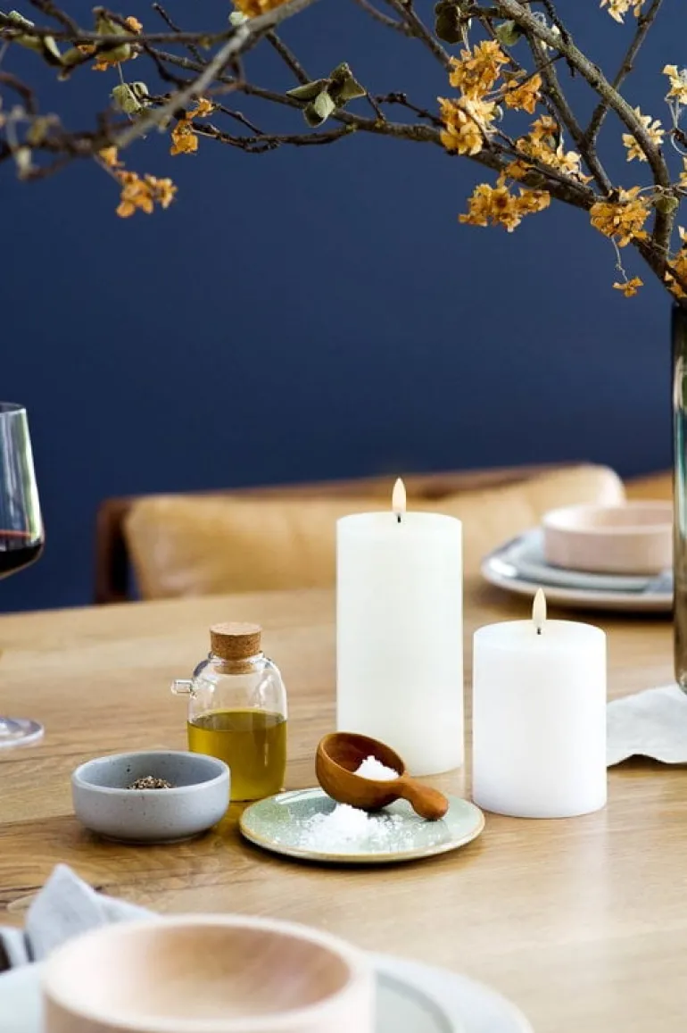 Blockljuset i LED från Uyuni Lighting är ett säkert sätt att skapa en varm och inbjudande atmosfär i ditt hem – en sådan som endast det mjukt flimrande ljuset från tända ljus kan skapa. Det långa ljuset är övertygande autentiskt. Det är belagt med äkta stearin och utrustat med Uyunis patenterade 3D-låga som imiterar den fladdrande lågan på ett vanligt ljus, och lyser mjukt med ett varmt och vitt sken.