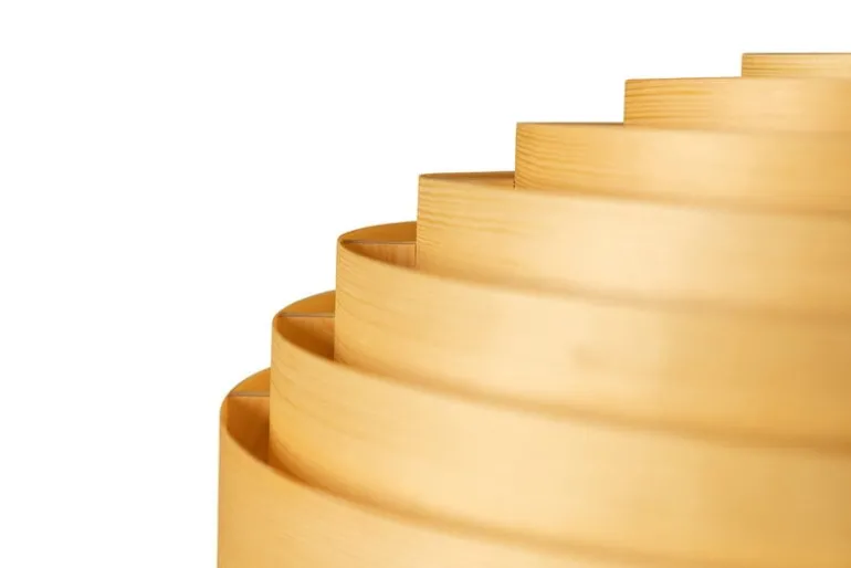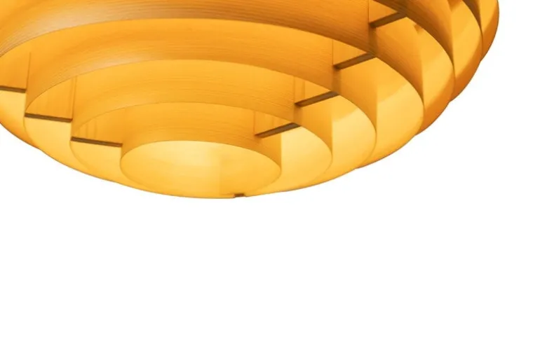 Vaarniis pendellampa Hans XL ger ett charmigt intryck med sin grafiskt runda form och sin väl tilltagna diameter på 70 centimeter. Utformningen av den ikoniska ljuskällan härstammar från formgivaren Hans-Agne Jakobssons penna. Nu har Vaarnii gett den här klassiska taklampan från 1960-talet en ny design och bytt ut ursprungsmaterialet mot finsk furu. Valet av naturträ passar perfekt till den här fascinerande vackra ljuskällan: ljuset skiner genom den livfulla träytan med ett milt, honungsgult sken som lockar dig att komma närmare. Ådringen gör att framtoningen blir mjukare och ger taklampan en naturlig karisma. Det stämningsfulla skenet från den stora pendellampan Hans XL kan med fördel användas till att lysa upp matsalen, köket och vardagsrummet, men också allmänna utrymmen. Hans-belysningen tillverkas för hand i Finland.
