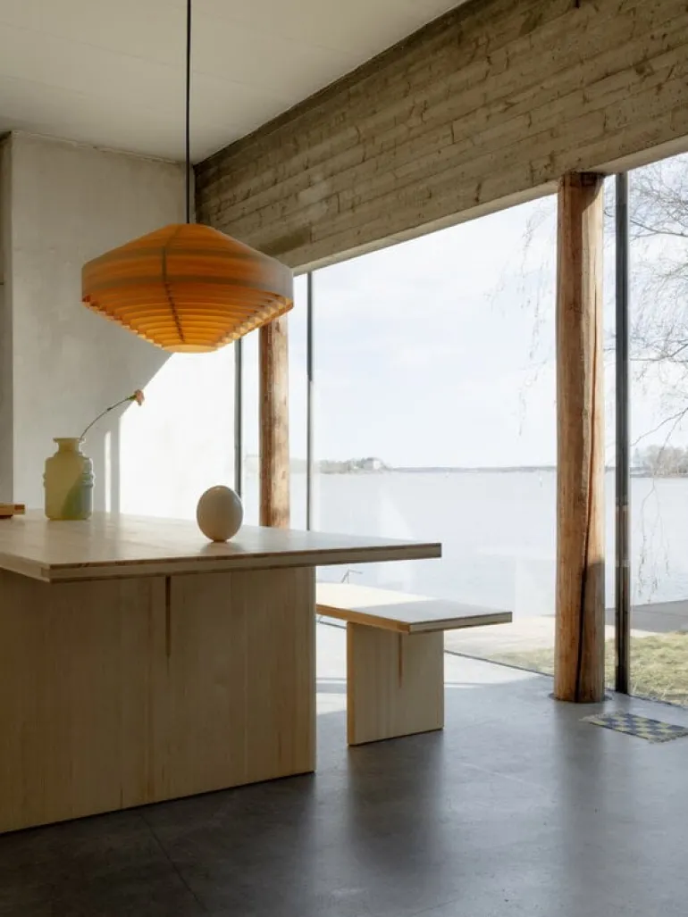 Pendellampan Hans från Vaarnii ger ett charmigt intryck med sin grafiska konform. Formspråket till den ikoniska ljuskällan kom ursprungligen till liv genom formgivaren Hans-Agne Jakobssons penna. Nu har Vaarnii gett den här klassiska taklampan från 1960-talet en ny design och bytt ut ursprungsmaterialet mot finsk furu. Valet av naturträ passar perfekt till den här fascinerande vackra ljuskällan: ljuset skiner genom den livfulla träytan med ett milt, honungsgult sken som lockar dig att komma närmare. Ådringen gör att framtoningen blir mjukare och ger taklampan en naturlig karisma. Det stämningsfulla skenet från pendellampan Hans kan med fördel användas till att lysa upp matsalen, köket och vardagsrummet, men också allmänna utrymmen.