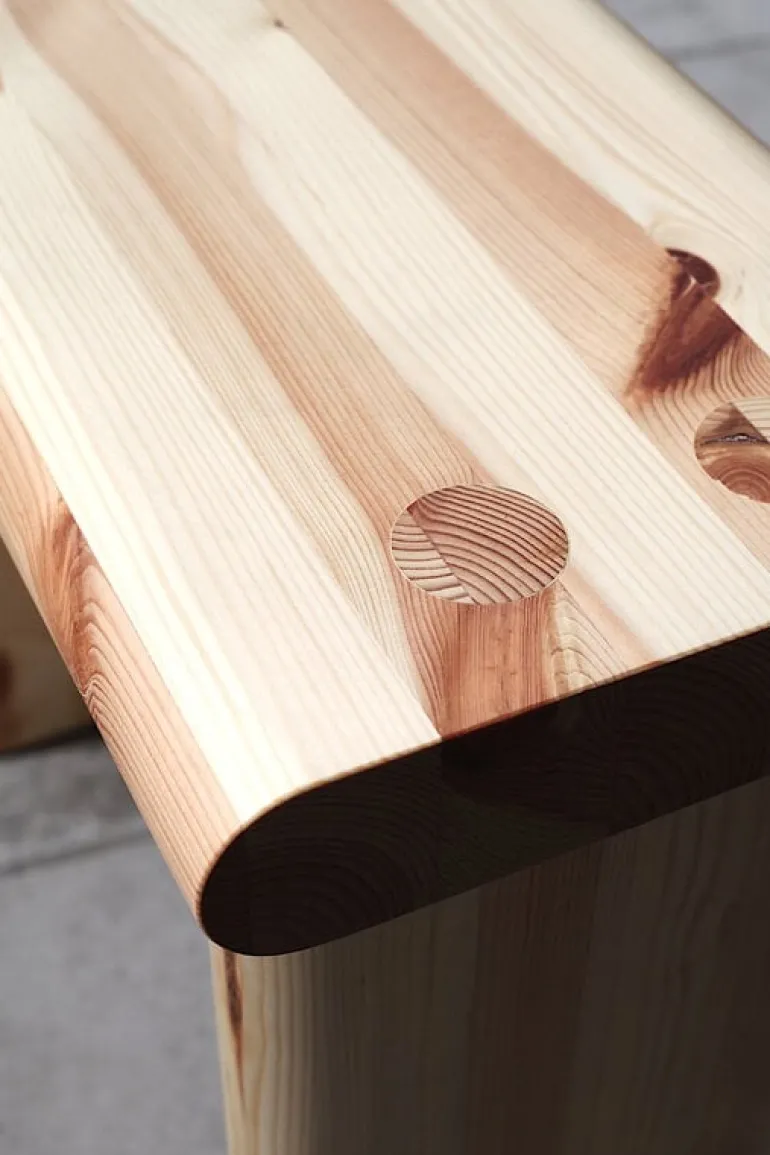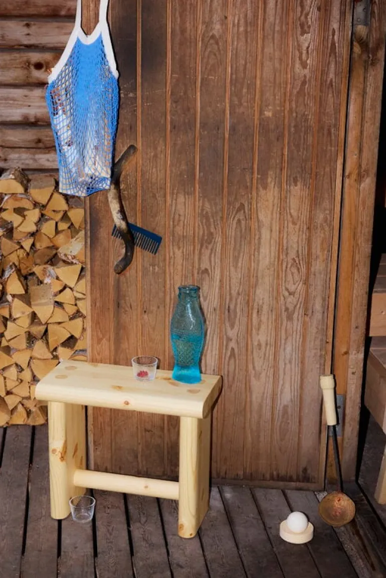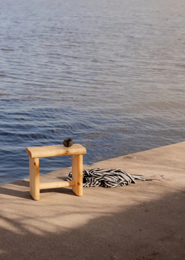 Vaarniis pall Ast är designad av Dimitri Bähler, och karaktäriseras av en opretentiös design som kombinerar det rustika med det moderna. Den enkla och robusta pallen består av tjocka bitar furu. De enda detaljerna är den något rundade kanterna, knölarna och de livliga ådrorna som är typiska för furu. Pallens namn, Ast, är tyska och betyder ”gren”. Det syftar på de små knölarna som du ofta hittar på det starka, ofta förbisedda materialet. Ast kan även användas som sidobord eller nattduksbord.