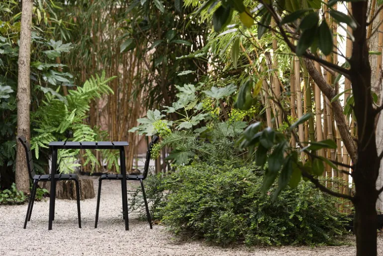 Det till synes enkla utseendet på Aligned stolen från valerie objects tar dig med överraskning: de asymmetriska lamellerna av tåligt aluminium ger den diskreta trädgårdsstolen en helt ny personlighet. En sann Maarten Baas-design i kärnan, den fantasifulla och lekfulla Aligned stolen har noggrant skapats baserat på den holländska designerns blyertsteckning. Den vackra och hållbara utomhusmatstolen är ett härligt tillskott till både trädgården och terrassen på sommarstugan – och kommer säkert att få dig att le år efter år.