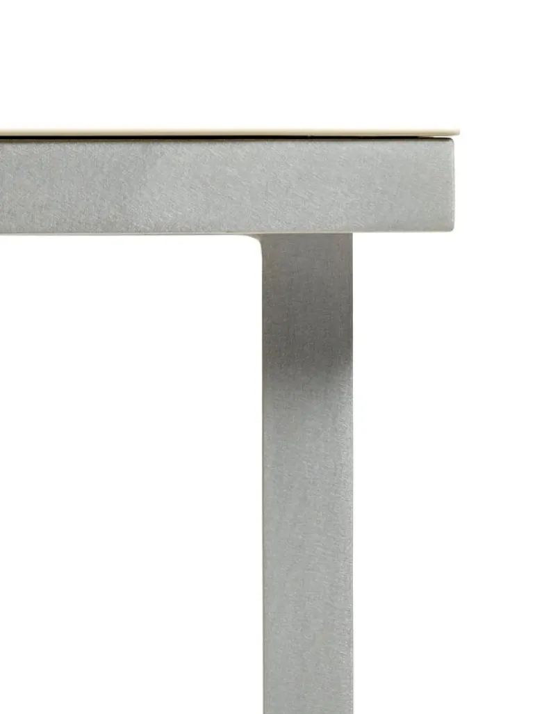 Matbordet Alu passar både inomhus och utomhus. Det lätta men extremt tåliga bordet har behandlats med bivax och ett UV-skyddande lack som tillsammans ser till att ytan håller sig skyddad från sol, regn och vind och förblir ljus och fin.