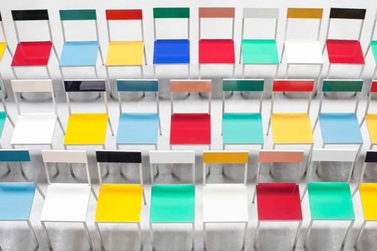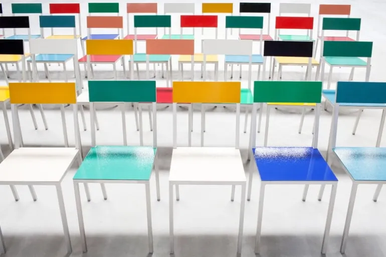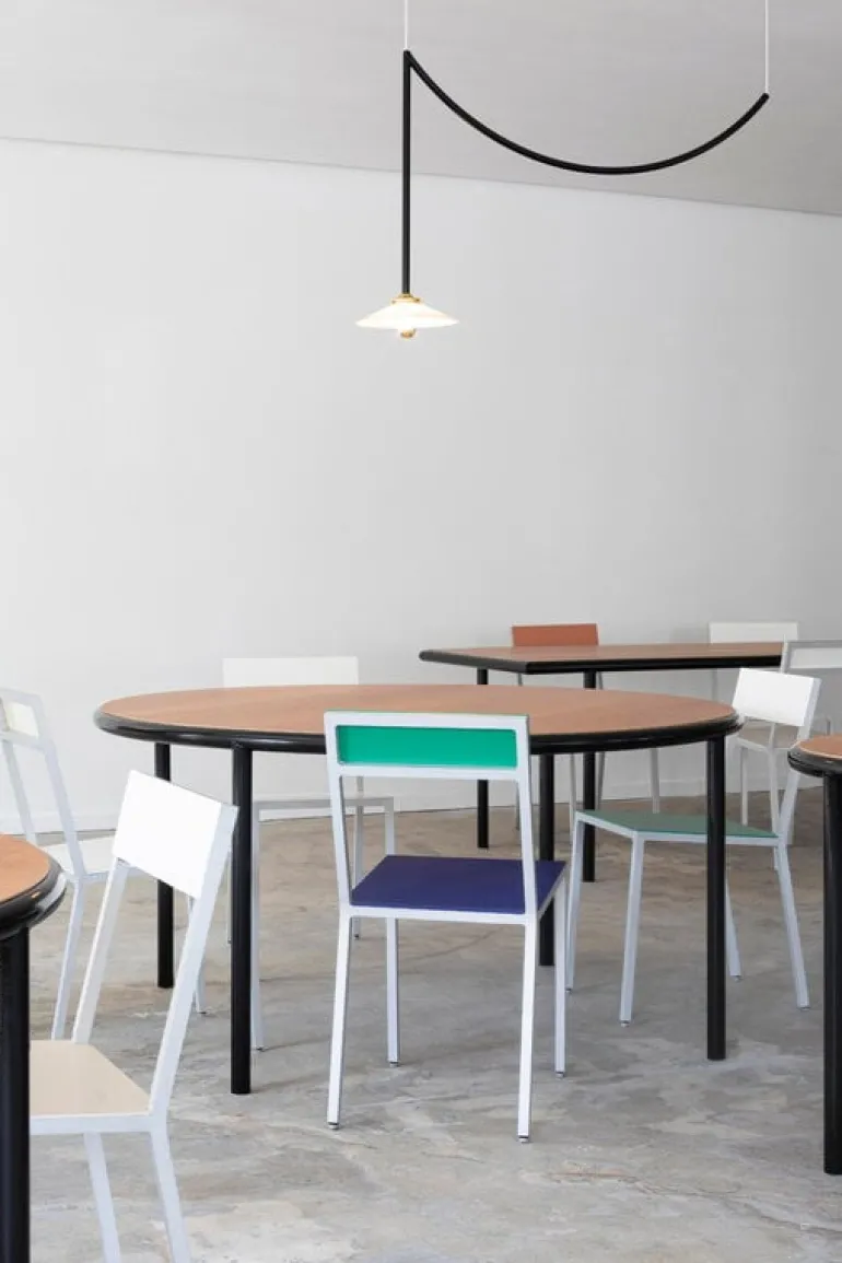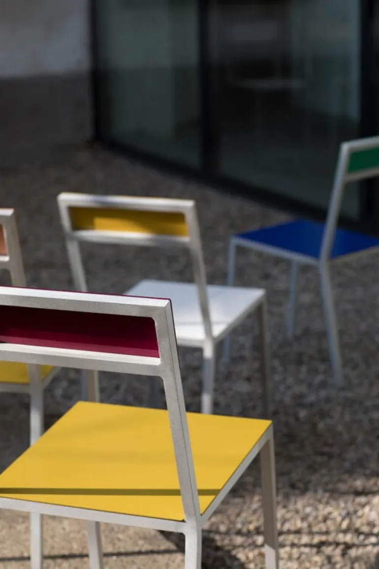 Stolen Alu från valerie_objects togs från början fram till världsutställningen i Milano 2015. Den färgglada stolen ger ett charmigt intryck med sina olika nyanser, men att hitta rätt färgkombination var inte så lätt för designstudion Muller Van Severen. Det var därför som de beslutade sig för att ta fram flera olika kombinationer, allt från väldigt pigga färger till lite mer allvarliga nyanser – men inte alltför dämpade förstås. Det är ju trots allt Muller Van Severen vi pratar om! Ryggstödet och sitsen på stolen är tillverkade av pulverlackerat aluminium och är dekorerade i olika nyanser, medan aluminiumramen har lämnats omålad i all sin glans. Välj ut dina egna favoritfärger eller kombinera ett antal stolar med helt olika färgtoner!
