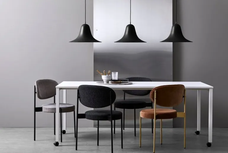 Series 430 från danska Verpan är en återlansering av Verner Pantons klassiska stol från 1967. Series 430 är en stol som kombinerar en stapelbar struktur av metallrör med en rund sits och ett böjt ryggstöd. Stolen mjukas upp av en snygg klädsel från Kvadrat.