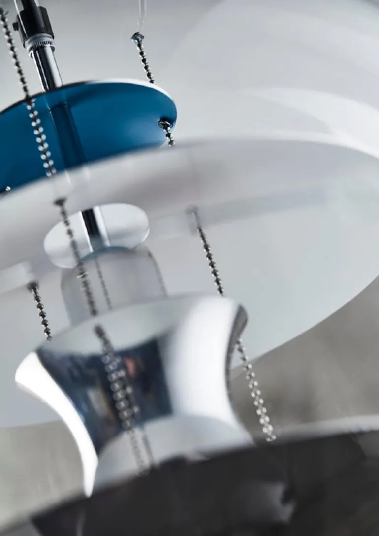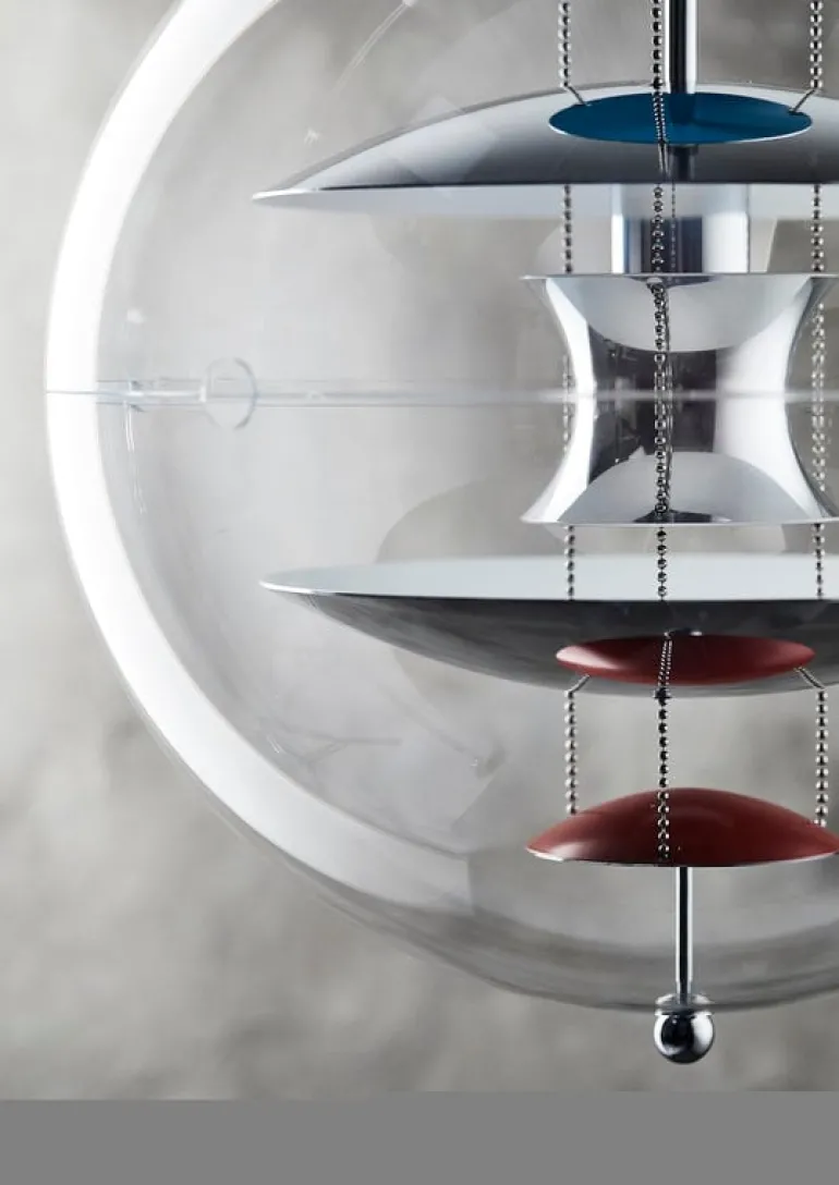 VP Globe-pendellampan skapades av Verner Panton 1969 och tillverkas idag av Verpan. Den är ett unikt exempel på Pantons inom belysningsdesign. VP Globe består av en transparent sfär i akrylplast och fem reflektorer som hänger i stålkedjor. Globen i akryl skapar en magisk bubbla runt de handpolerade aluminiumreflektorerna som leker med de omgivande formerna och accentfärgerna i rött och blått. VP Globe är en skickligt utförd studie i samspelet mellan form, ljus och färg. Den blir till ett vackert blickfång över matbordet eller i vardagsrummet, till exempel.