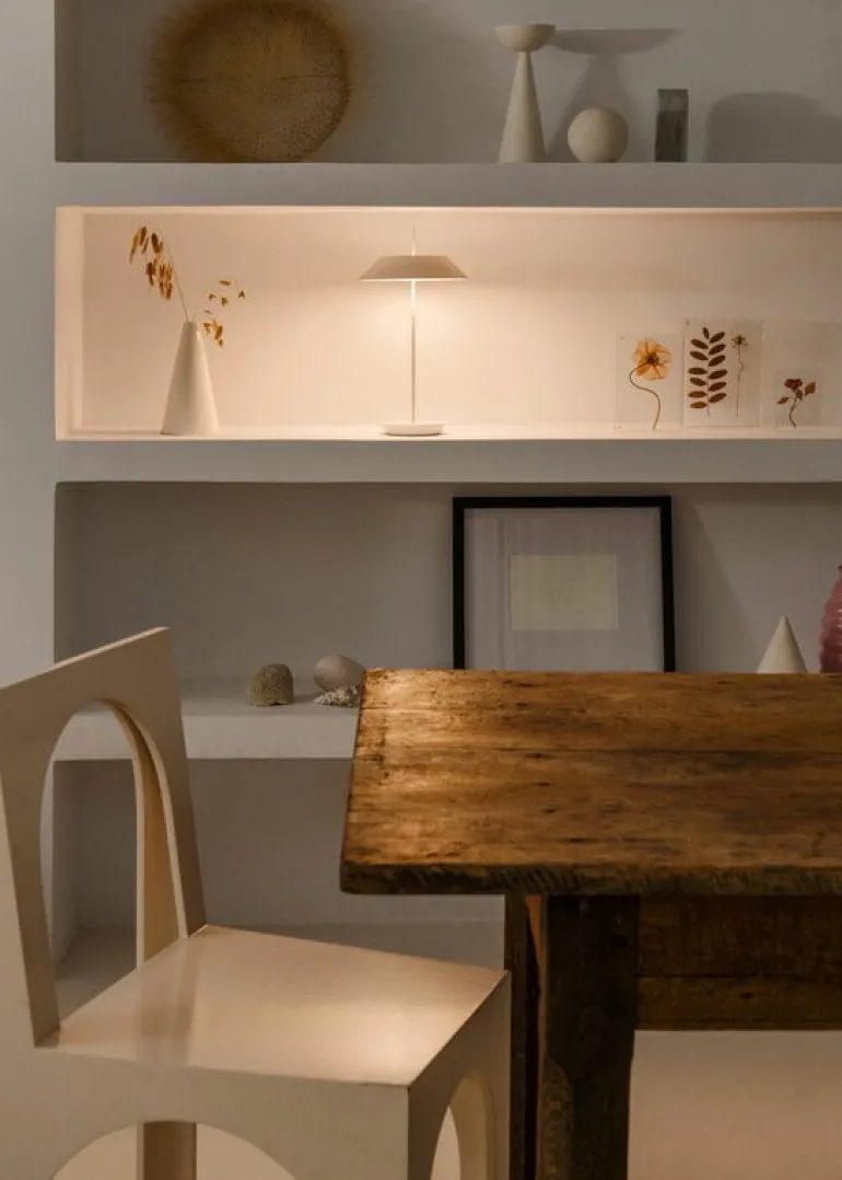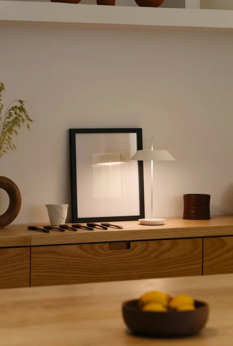 Vibias bordslampa Mayfair Mini är formgivaren och konstnären Diego Fortunatos moderna tolkning av de klassiska Bouillottelamporna från 1800-talet. Lampan har försetts med modern teknik, som exempelvis en energisnål LED-lampa, en optisk sensor på foten som gör det enkelt att ställa in önskad ljusstyrka och ett uppladdningsbart batteri som gör att lampan enkelt kan flyttas efter behov. Trots sitt namn så är Mayfair Mini inte alls någon lampa i miniatyrstorlek, bara mindre än den ursprungliga Mayfair-lampan.