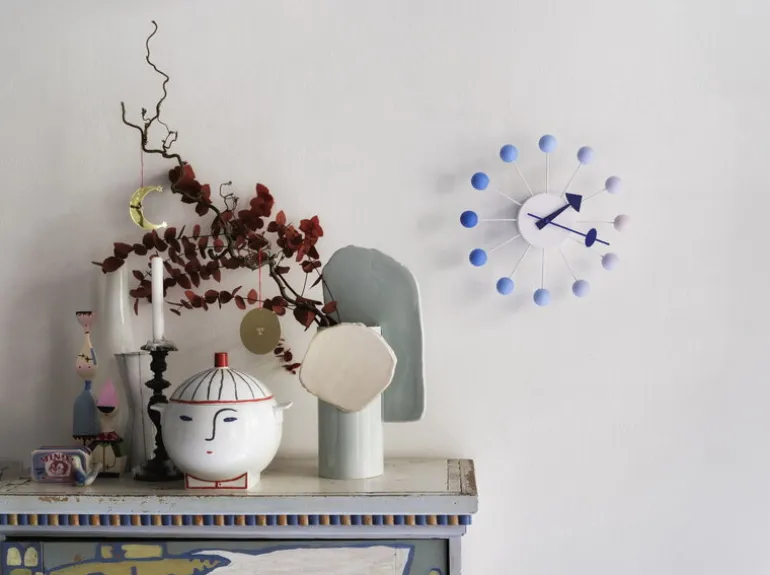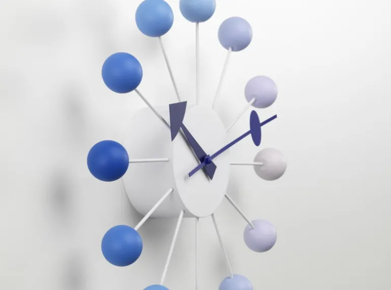 Den ikoniska Ball Clock skapades ursprungligen 1949, då George Nelsons kontor designade klockmodeller för den amerikanska tillverkaren Howard Miller. För att fira väggklockans 75-årsdag har Vitra släppt en begränsad upplaga med olika nyanser inspirerade av dagens skiftande stämningar, från gryning till skymning.