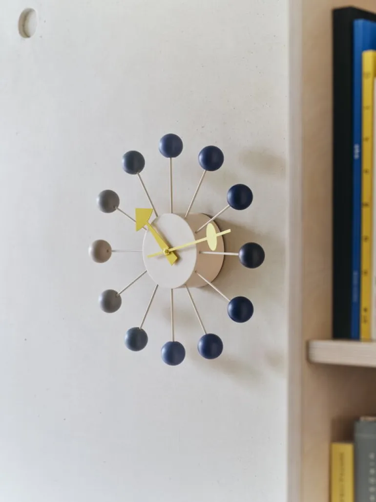 Den ikoniska Ball Clock skapades ursprungligen 1949 när George Nelsons kontor designade klockmodeller för den amerikanska tillverkaren Howard Miller. För att fira väggklockans 75-årsdag har Vitra släppt en begränsad upplaga med olika nyanser inspirerade av dagens skiftande humör, från gryning till skymning.