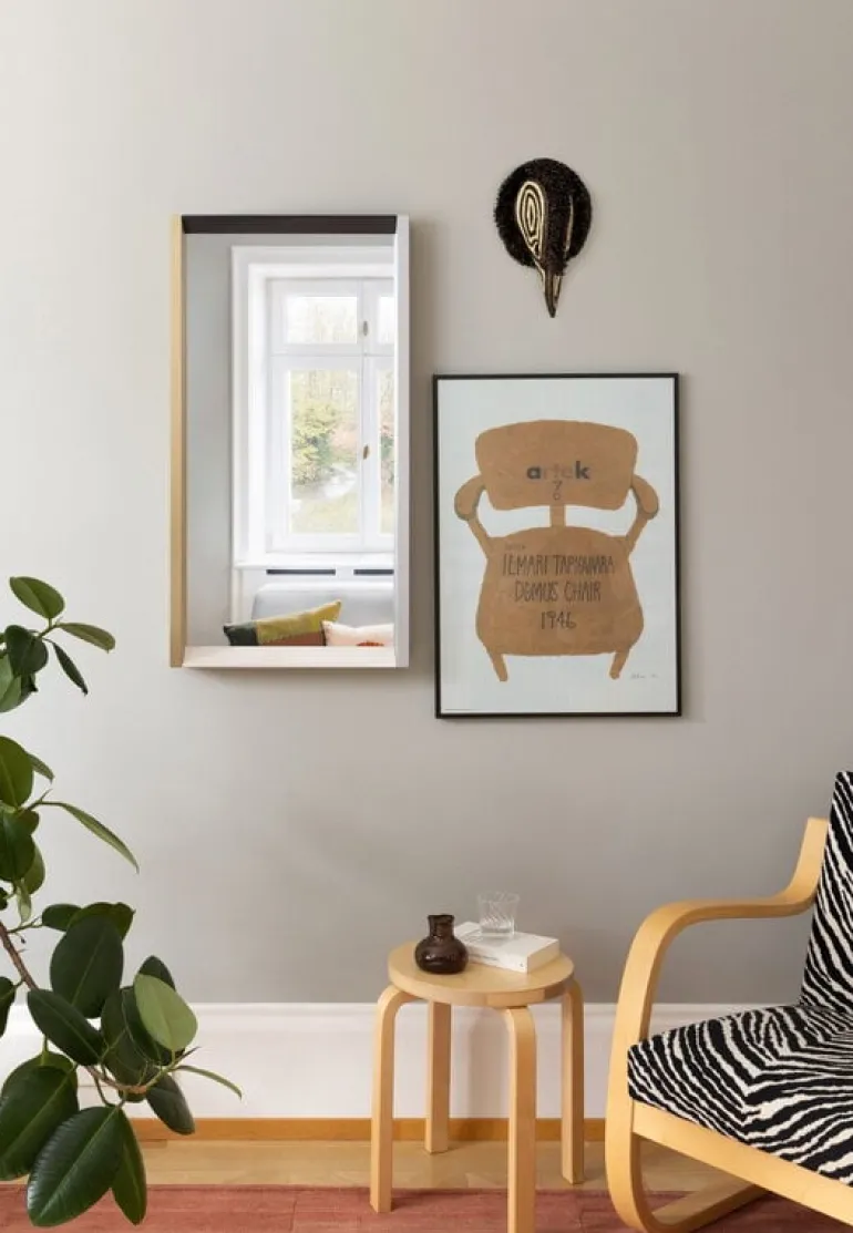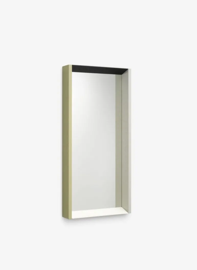 Vitras spegel Colour Frame ger ett fascinerande intryck med sin ohämmade användning av färg – varje sida av den rektangulära träramen är målad i olika nyanser. Ramen i askträ är dessutom tillräckligt djup för att kunna användas som hylla, där du kan förvara dina nycklar, solglasögon, läppbalsam och andra små viktiga föremål.
