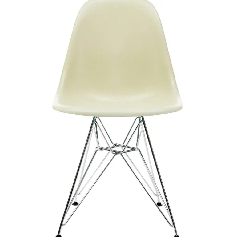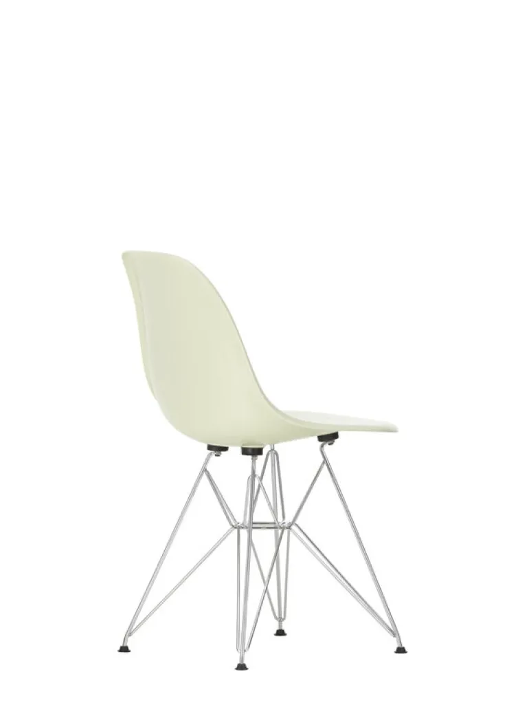 Vitras Eames DSR-stol i fiberglas kombinerar en spännande sits i fiberglas med grafiska, korsade metallben som gett stolen smeknamnet ”Eiffelstolen”. Namnet DSR kommer från orden Dining Height Side Chair Rod Base.