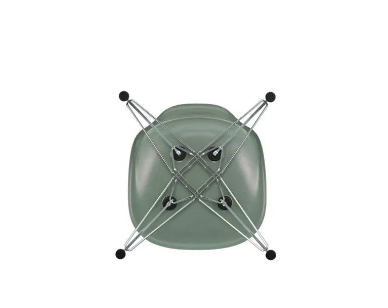 Vitras Eames DSR-stol i fiberglas kombinerar en spännande sits i fiberglas med grafiska, korsade metallben som gett stolen smeknamnet ”Eiffelstolen”. Namnet DSR kommer från orden Dining Height Side Chair Rod Base.