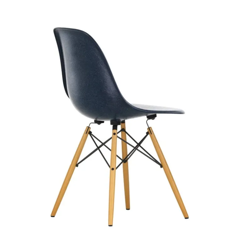 Vitras Eames DSW-stol kombinerar en spännande sits i fiberglas med ben i lönnträ, med stöd av en stålram. Namnet DSW kommer från orden Dining Height Side Chair Wood Base.