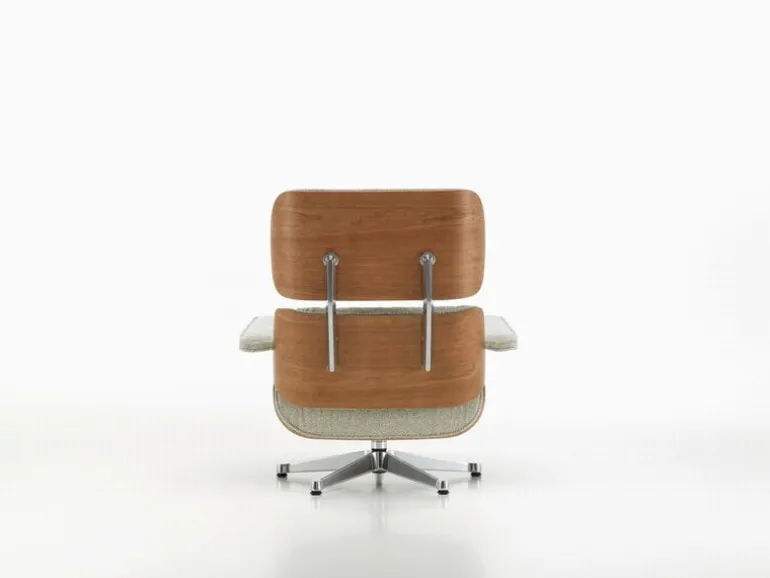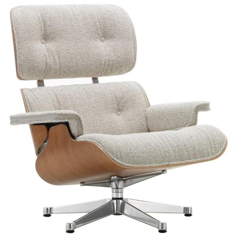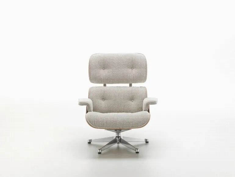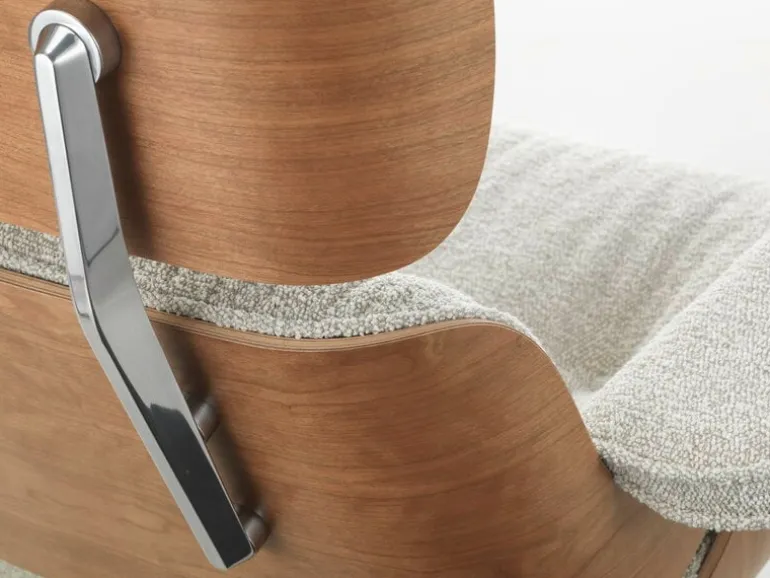 Stolen som vi alla lärt känna och älska har dynor klädda i läder, men när den introducerades på 1950-talet utgavs stolen under en kort tid i en tygklädd version. 2023 återlanserade Vitra Eames Lounge Chair med tygöverdrag, den här gången med det livfulla bouclétyget Nubia.