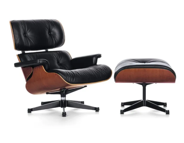 Den ikoniska fåtöljen Eames formgavs av Charles och Ray Eames 1956 och är en modern version av en traditionell engelsk clubfåtölj. Paret Eames ville skapa en generös fåtölj som förenade ergonomi med bästa möjliga material och hantverk. Det tog flera år att skapa den perfekta fåtöljen som skulle skilja sig från en klassisk clubfåtölj med sin lättare och mer eleganta design och oslagbara komfort.