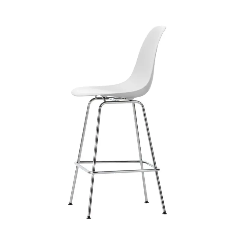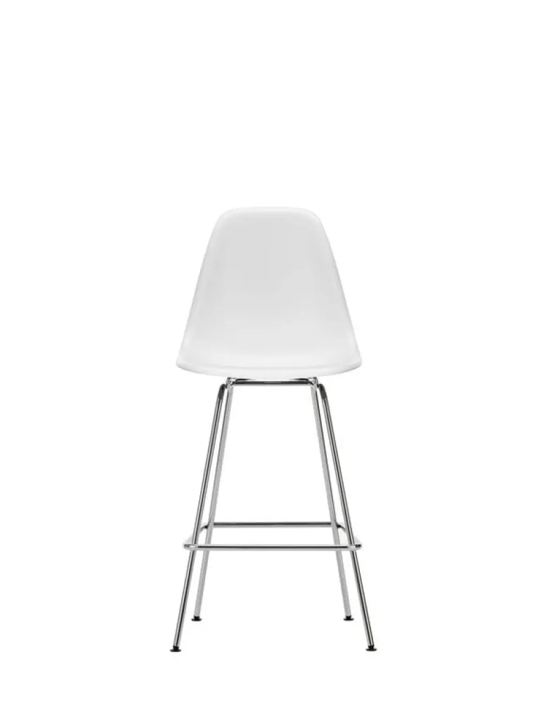 Vitras Eames Plastic Stool är en karaktärsfull barstol som tar den ikoniska designen från Charles och Ray Eames plaststolar till nya höjder med sin fyrbenade metallbas. Sitsen ger utmärkt ryggstöd, vilket gör barstolen perfekt för både snabba kaffepauser och avslappnade sammankomster och möten. Den medelstora versionen av barstolen passar till standardhöga köksbänkar.