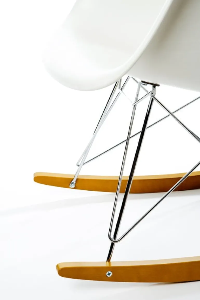 Plaststolarna Eames, som är formgivna av Charles och Ray Eames, är verkliga ikoner inom 1950-talsdesign. Dess popularitet ligger i den tidlösa, ergonomiska designen och de många olika benalternativen. Originalet med en sits i fiberglas var den allra första industriellt producerade plaststolen. Med åren har Vitra justerat storleken och geometrin på de klassiska stolarna för att göra dem mer bekväma för att bättre passa de behov som finns idag. RAR-gungstolarnas dimensioner uppdaterades 2019: längre medar, högre sits och en mer upprätt sittvinkel har gjort stolarna mer stabila än tidigare.
