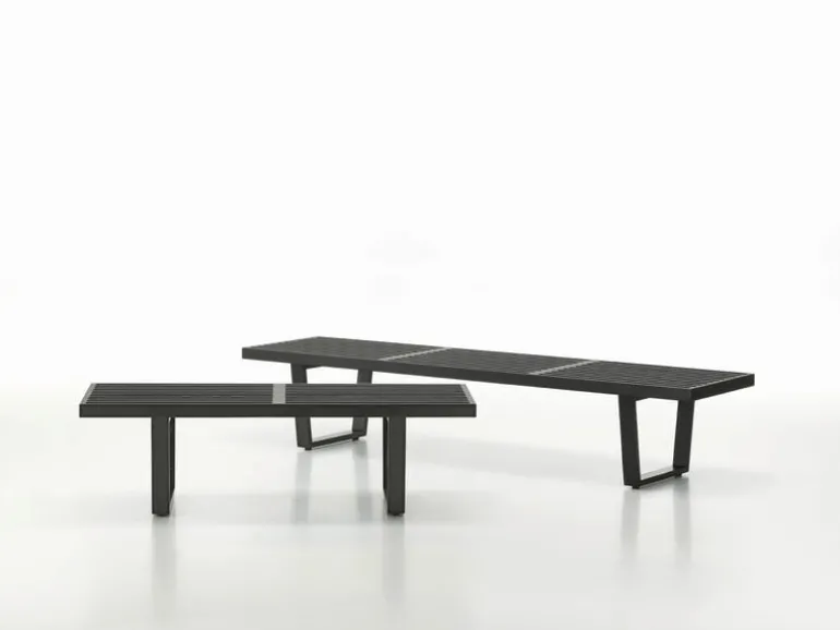 Vitras Nelson-bänk är en designklassiker från 1940-talet, utvecklad av George Nelson, vars bakgrund inom arkitektur syns i bänkens rena, funktionella design. Nelson-bänkens luftiga charm kommer från smala, lackerade askträbitar med tomma utrymmen mellan dem. Bitarna hålls samman med starka fingerskarvar och stöds av två svarta, vinklade ben. Förutom som sittplats kan Nelson-bänken också användas som sidobord.