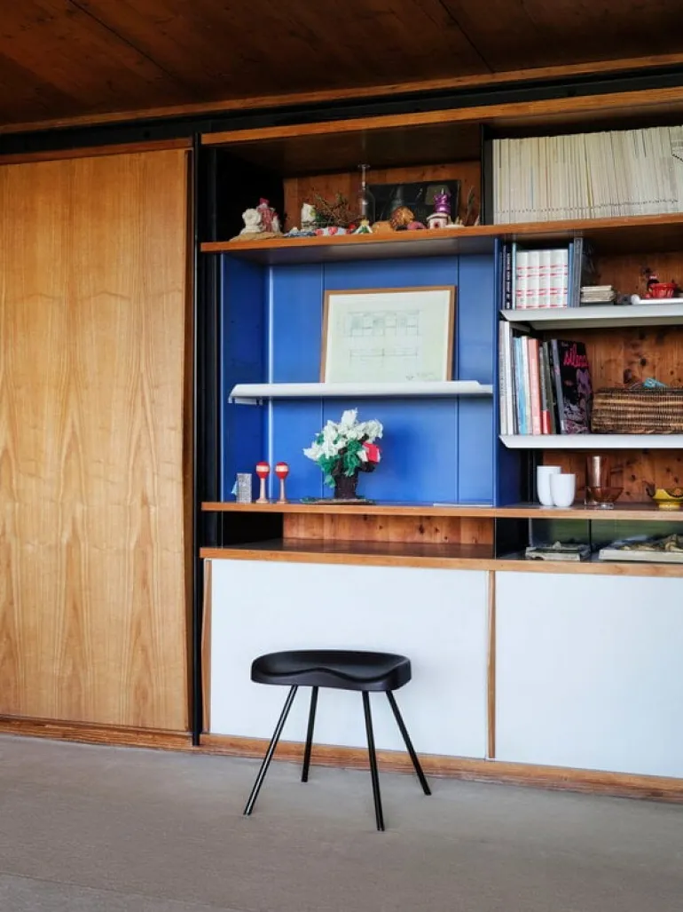 Vitras Tabouret N° 307, eller pall nummer 307, består av graciösa stålben och en fascinerande ovanlig träsittdyna, vars ergonomiska form påminner om en traditionell traktorsits. Skapad av den franska designern, arkitekten och ingenjören Jean Prouvé, daterar sig pallens ursprungliga design tillbaka till 1950-talet. Nästan 70 år senare, 2022, återlanserade Vitra pallen i nyanser inspirerade av Prouvés ursprungliga färgpalett.