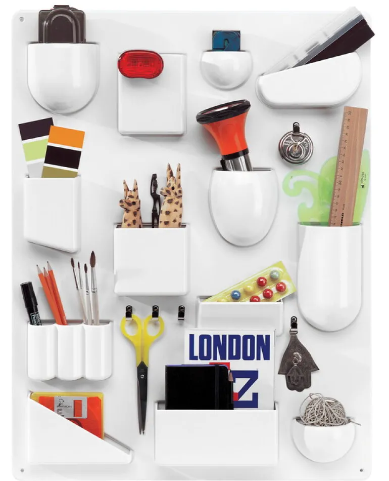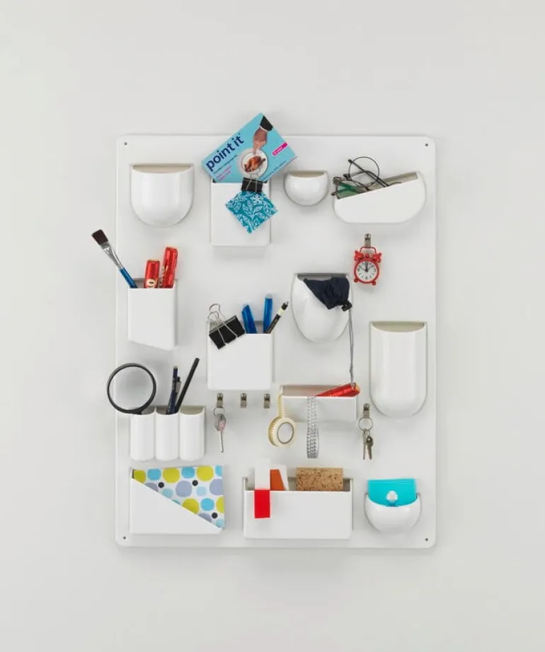 Vitras Uten.Silo RE II är en vacker och praktisk förvaringslösning för småsaker. Uten.Silo II designades av Dorothee Becker 1970 och hjälper till att hålla ordning i köket, badrummet, hallen, kontoret och barnrummet – de karaktärsfulla små skåpen och krokarna gör underverk i alla rum och interiörer, både hemma och på kontoret! Uten.Silo RE II är tillverkad av återvunnen postindustriell ABS-plast. Uten.Silo skapades ursprungligen för Design M och produceras nu av Vitra. Dorothee Becker har avslöjat att hon fick inspiration till Uten.Silo från en textilförvaring