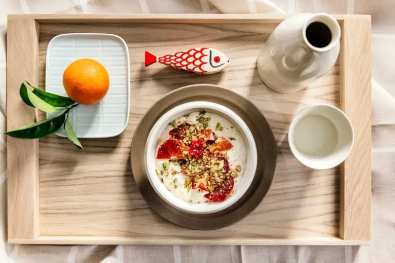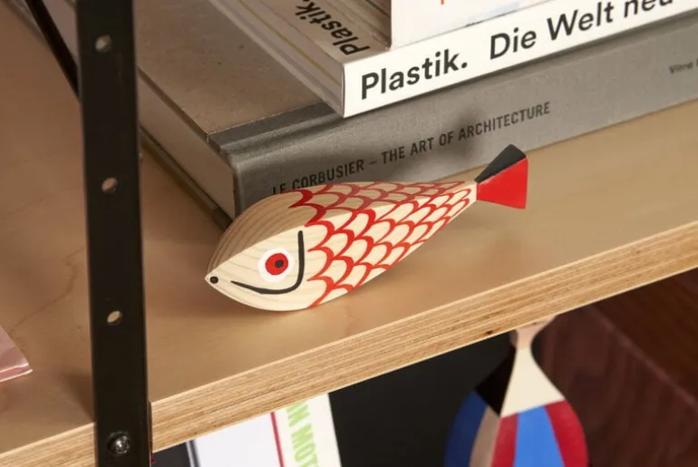 Vitras Wooden Dolls Mother Fish & Child, formgiven av Alexander Girard, är en charmig fiskduo tillverkad av handmålad gran. De här unika fiskfigurinerna i trä levereras förpackade i en elegant presentask av trä.