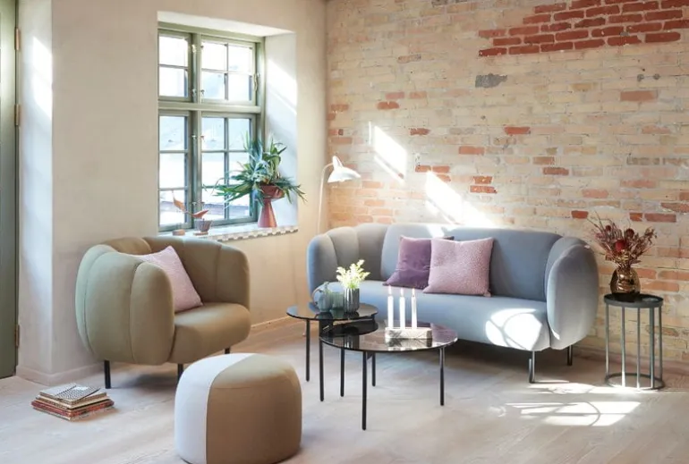 Warm Nordics soffbord skapades av den norska formgivarduon Morten & Jonas. Den luftiga designen består av smala metallben och en rund bordsskiva i rökfärgat glas som påminner om gamla tiders soffbord. Namnet, From Above, refererar till de tre trianglarna som formar bordets stödstruktur, och som bara syns när betraktaren ser på det ovanifrån.