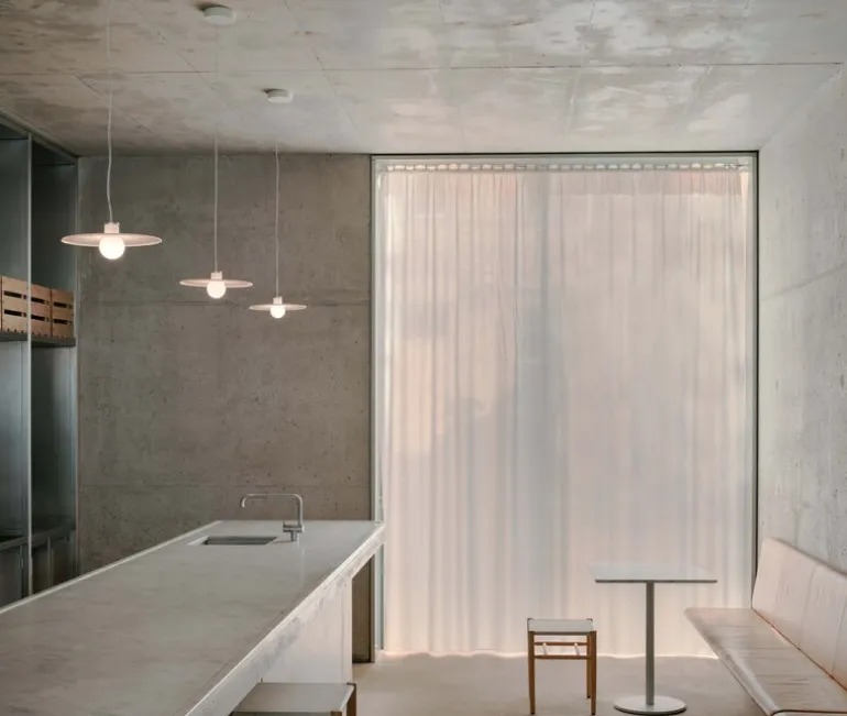 Wästbergs Halo hänglampa är den brittiska designern David Chipperfields hyllning till glödlampan – den mest betydande delen av alla ljuskällor som dock ofta förbises som designelement. I Halo-hänglampan är ljuskällan en integrerad COB LED-enhet som har täckts med en glödlampsliknande glasdekoration. Det vill säga, glödlampan som sticker ut under skärmen är faktiskt inte en glödlampa alls, utan en del av skärmen själv! Både glödlampan och skärmen är gjorda av opalglas som filtrerar ljuset mjukt och behagligt, vilket får hela armaturen att skimra vackert i mörkret.