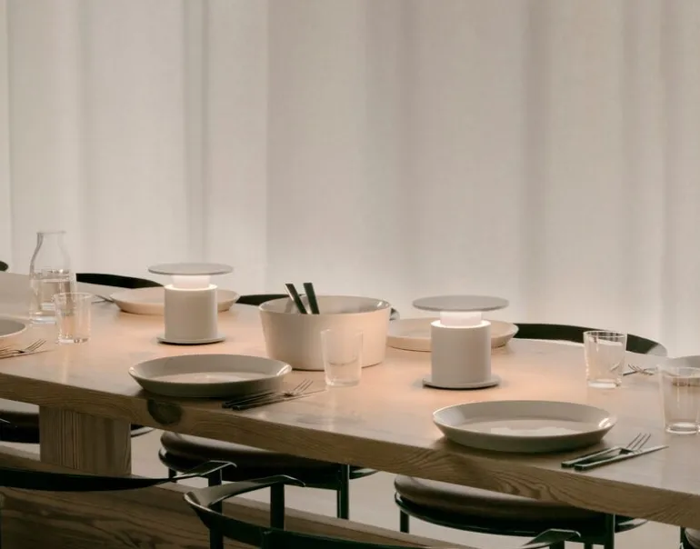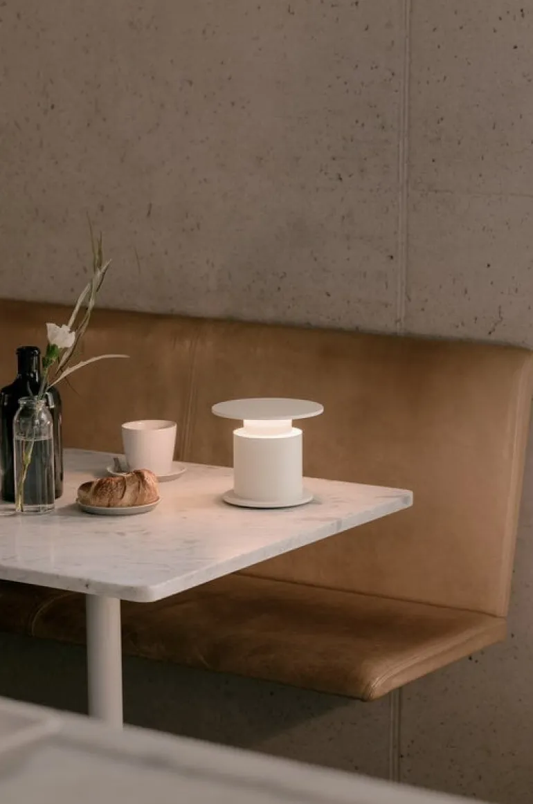 Wästbergs bärbara bordslampa w241 Faro är inspirerad av formen på en liten fyr och kombinerar en minimalistisk design med modern belysningsteknik. Lampan, som är dimbar, låter dig justera ljusstyrkan sömlöst genom att vrida på den cirkulära skivan på toppen. Ljuset kan justeras från ett mjukt sken till ett behagligt starkt läsljus. Med en IP54-klassning som skyddar mot damm och vattensprut är den sladdlösa lampan även perfekt att använda utomhus, till exempel på trädgårdsfester eller sena sommarkvällar. w241 Faro laddas med en USB-C-kabel och ger 7,5 till 20 timmars ljus per laddning, beroende på ljusstyrka. En diskret indikator på basen visar den aktuella batterinivån.