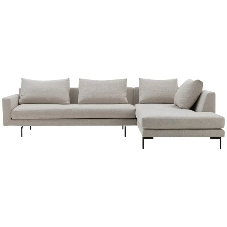 Wendelbos modulsoffa Edge V2 har en tidlöst modern design som passar i vardagsrum och med en rad olika stilar. Soffan ser inte bara iögonenfallande bekväm ut, utan är dessutom oerhört mångsidig: konstruktionen i moduler gör att Edge V2-sofforna blir väldigt anpassningsbara. Den här soffan har utrustats med en divan, som syns till höger på produktbilden, vilket alltså blir på soffans vänstra sida sett från sittande läge. Soffans mjuka framtoning förstärks av den stilrena, ljusgrå klädseln och de smala benen av stål.