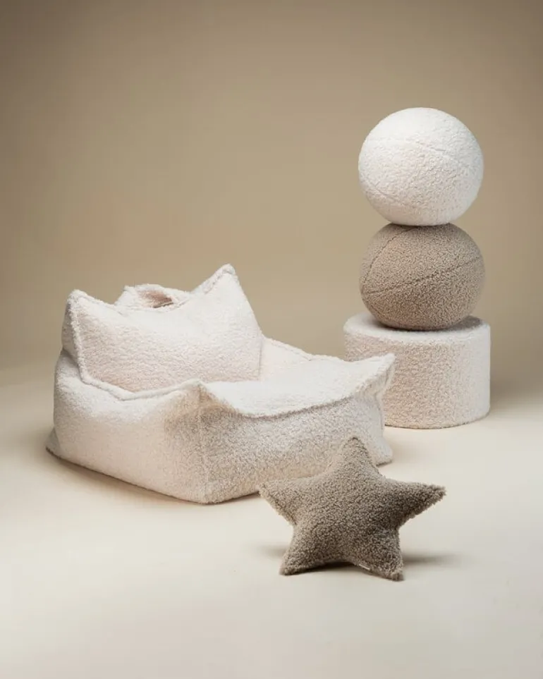 Wigiwamas stol Beanbag är en trivsam plats för all slags avkoppling och vila. Den mjuka stolen är särskilt framtagen för familjens yngsta medlemmar, men den är även lämplig för vuxna – den lockar dig att krypa upp i dess famn för att läsa, leka, koppla av eller till och med sova en stund! Sittsäcken är fylld med polystyren och klädd med ett avtagbart överdrag av teddytyg. Det lena tyget är tillverkat av återvunna PET-flaskor – så plast som redan använts en gång tidigare får nu nytt liv tack vare Beanbag!