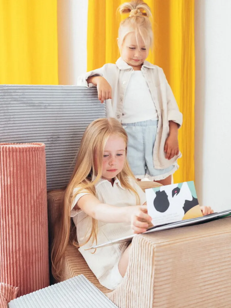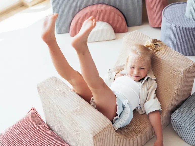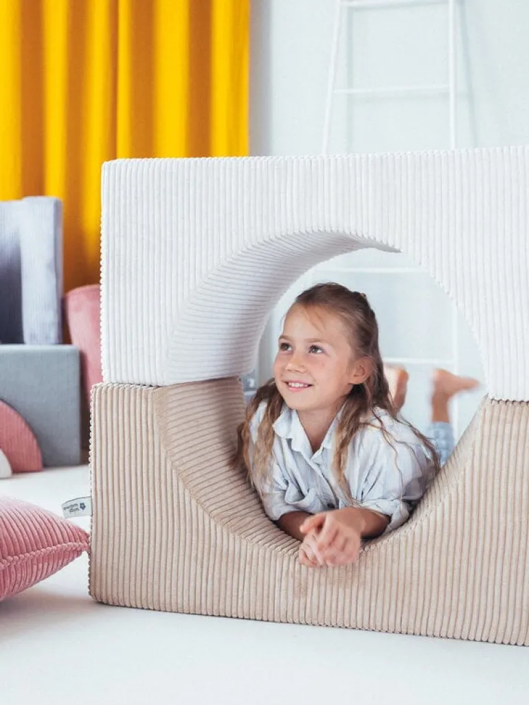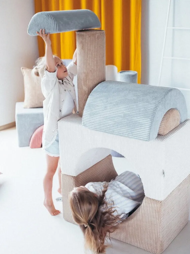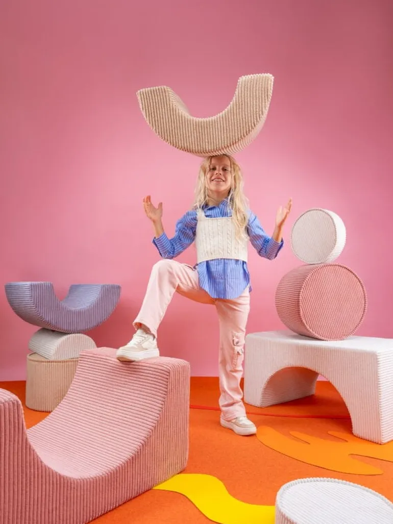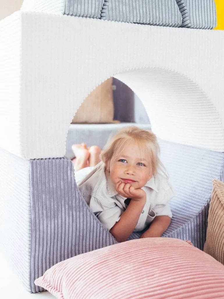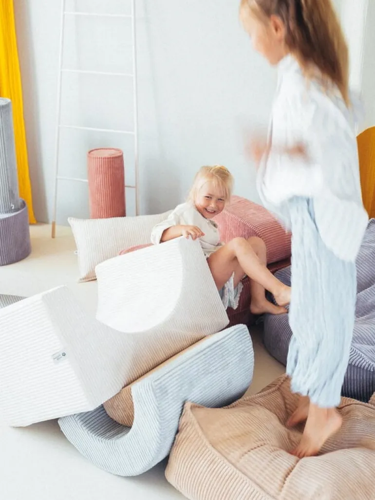 Wigiwamas lekset Rainbow låter barnen leka och ha roligt med tre olikformade moduler, som antingen kan användas tillsammans eller var för sig. Det mångsidiga setet kan användas som stol, bord, fotpall eller koja – endast barnens fantasi sätter gränserna! De mjuka, avtagbara överdragen är tillverkade av manchester, som är framställd av återvunna PET-plastflaskor – efter att plasten använts får den alltså leva vidare i leksetet. Det miljövänliga leksetet Rainbow är en fröjd för barnen att leka med i barnrummet, men det stilrena utförandet gör att vuxna inte heller har något emot om vissa delar ibland skulle komma på villovägar i hemmet.