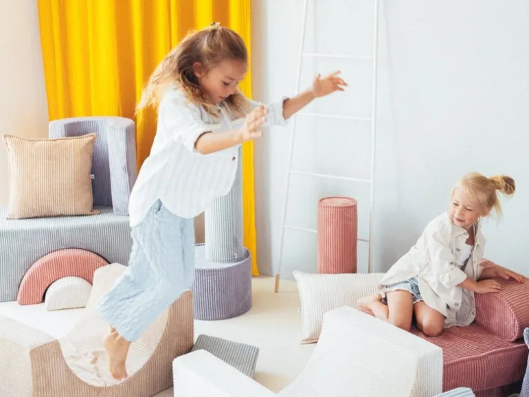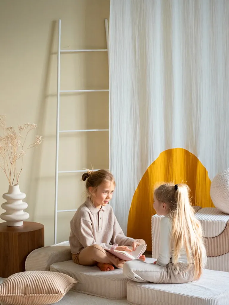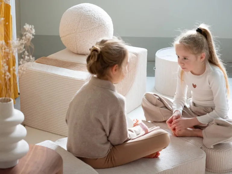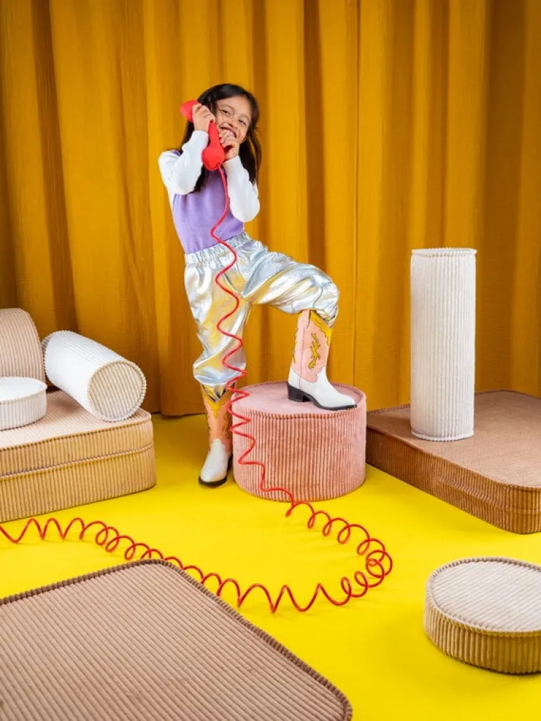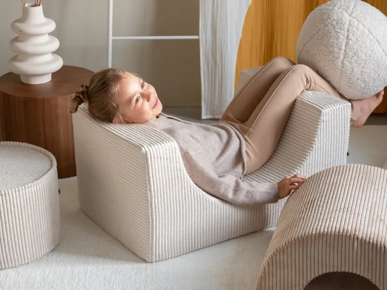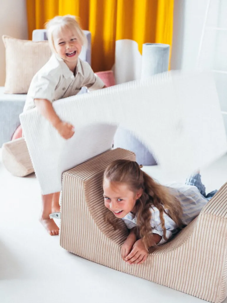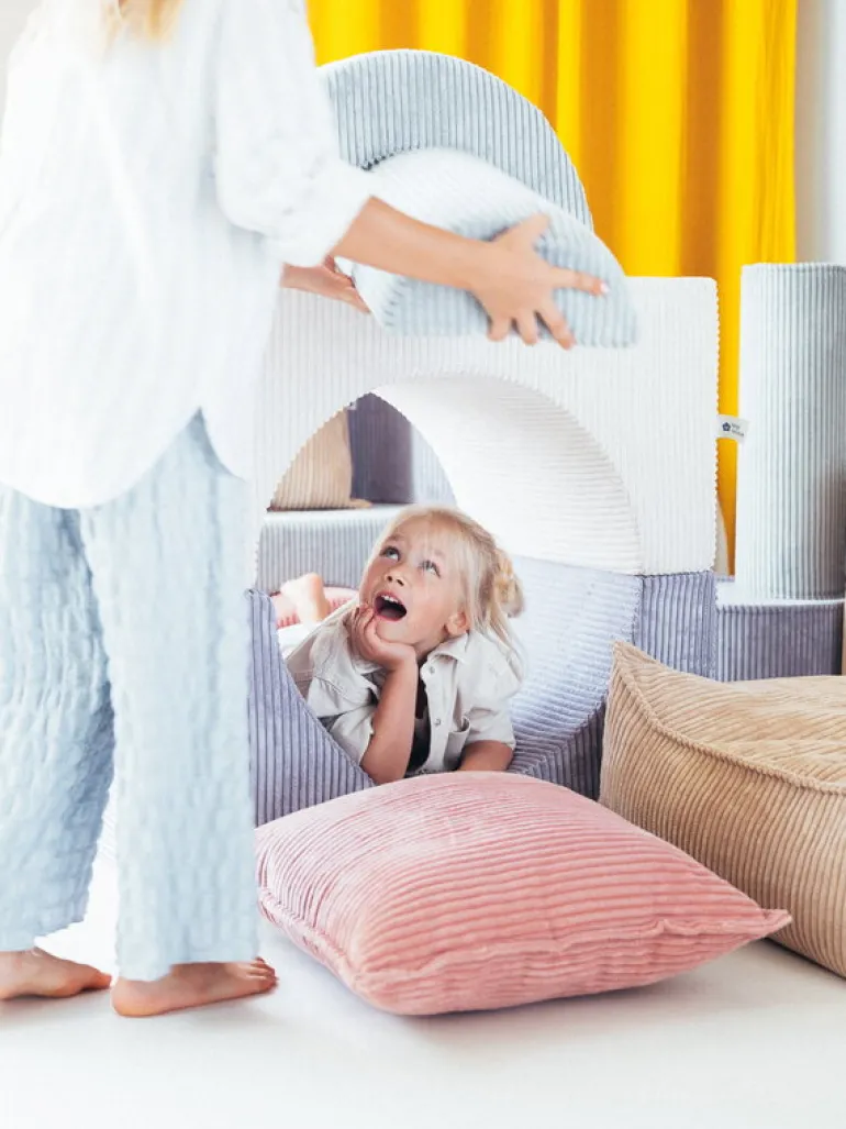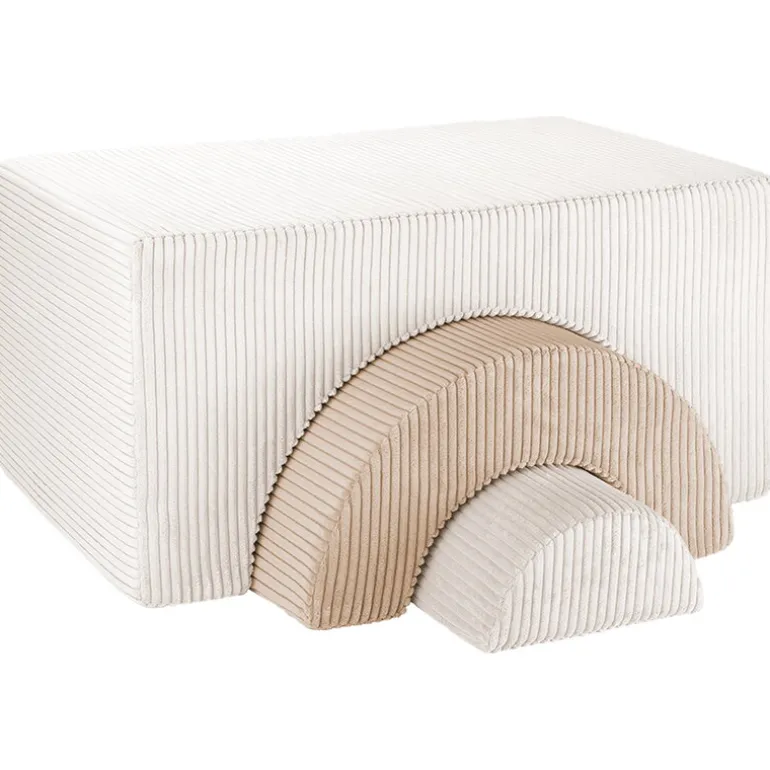 Wigiwamas lekset Rainbow låter barnen leka och ha roligt med tre olikformade moduler, som antingen kan användas tillsammans eller var för sig. Det mångsidiga setet kan användas som stol, bord, fotpall eller koja – endast barnens fantasi sätter gränserna! De mjuka, avtagbara överdragen är tillverkade av manchester, som är framställd av återvunna PET-plastflaskor – efter att plasten använts får den alltså leva vidare i leksetet. Det miljövänliga leksetet Rainbow är en fröjd för barnen att leka med i barnrummet, men det stilrena utförandet gör att vuxna inte heller har något emot om vissa delar ibland skulle komma på villovägar i hemmet.