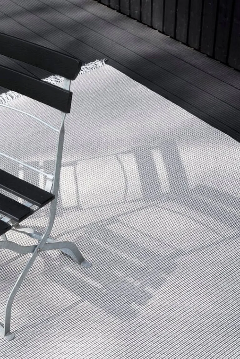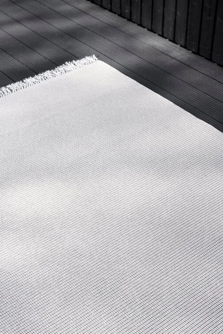 Grain In-Out-mattan från Woodnotes är tillverkad av fukt- och blekningsresistent polypropen, vilket gör den väl lämpad för kök och barnrum samt balkonger, uteplatser och andra utomhusområden. Grain-mattan är också en utmärkt och praktisk utomhusmatta för poolområden eller strandhus, eftersom polypropenfibrer står emot klor och saltvatten.