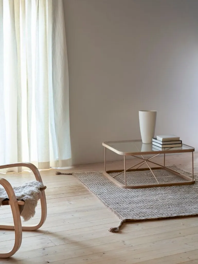 Bordet Twiggy, från Woodnotes, är ett sofistikerat sidobord eller soffbord som enkelt får plats i vilket rum som helst. Under bordets fyrkantiga glasskiva bildar tunna ekpinnar en vacker komposition, som ger bordet ett fängslande och intressant utseende. Bordet har formgivits av Ilkka Suppanen och Raffaella Mangiarotti.