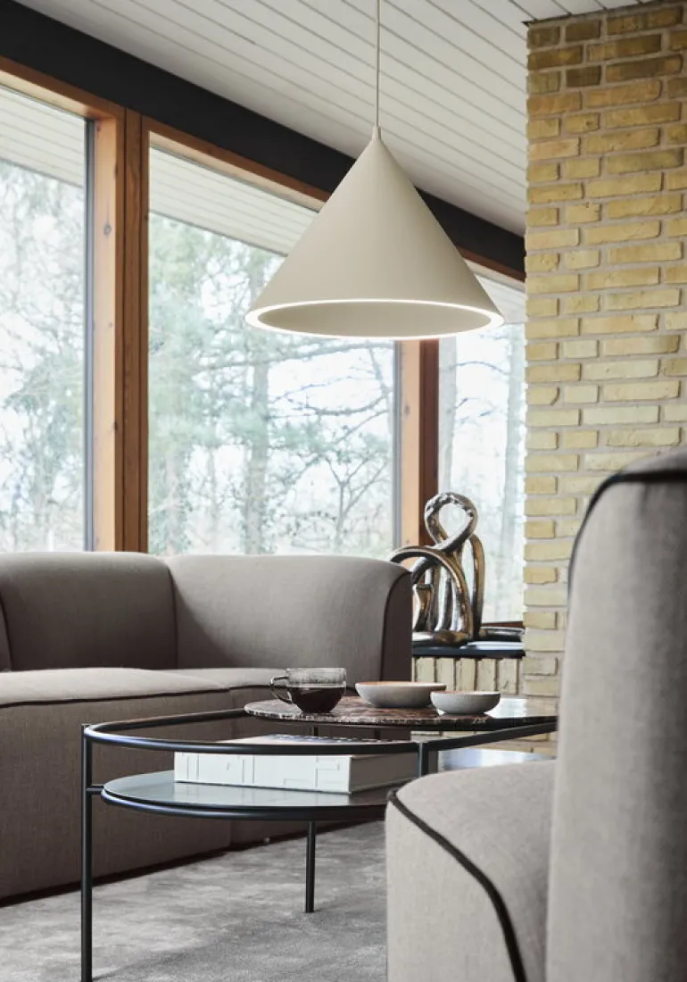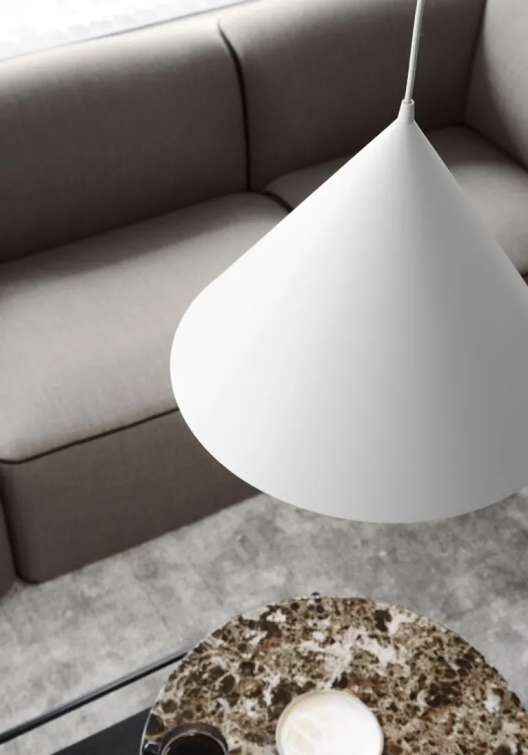 Den minimalistiska pendellampan Annular från Woud har en klassisk konformad skärm och en oväntad ljuskälla: en ring av LED-lampor omger den nedre delen av konen. Pendellampan Annular är designad av MSDS Studio och är tillverkad av spunnen, målad aluminium och har en textilsladd i matchande färgnyans. Annular ser fantastisk ut över alla slags bord och är ett måste för alla som uppskattar eleganta geometriska former.