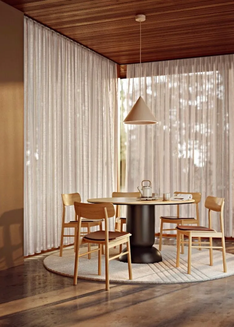Soffbordet Ludo från Woud kännetecknas av kontrasten mellan det tjocka benet och den tunna bordsskivan. Bordet, som designats av den danska designstudion Steffensen & Würtz, kombinerar inte bara geometriska former utan även olika material på ett charmigt sätt. Resultatet är ett lekfullt men samtidigt elegant, minimalistiskt soffbord som kan användas i vardagsrummet bredvid soffan eller som ett graciöst sidobord i andra rum i hemmet.