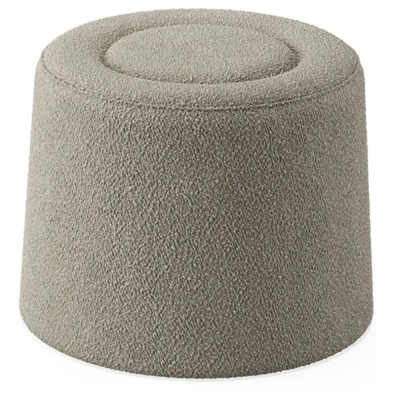 Wouds sittpuff Praline, som både inspirerats av och har stora likheter med chokladkonfektyr, lever minst sagt upp till sitt namn. Den rundade formen som vidgar sig en aning nertill samt bouclétygets kviltade sömmar ger faktiskt intrycket av en gigantisk pralin!
