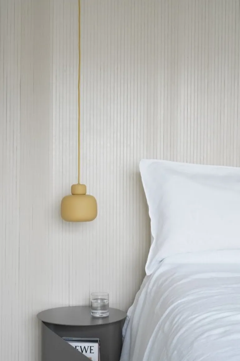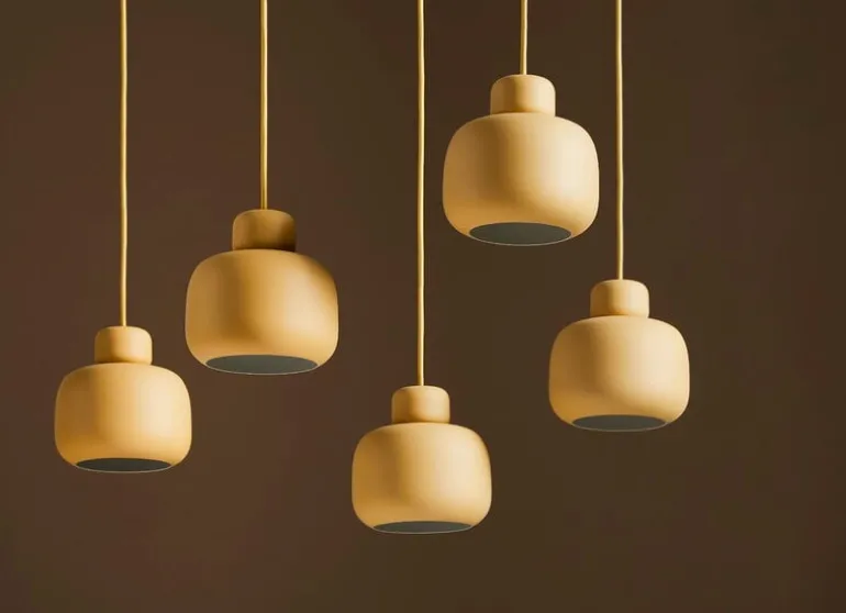 Wouds pendellampa Stone efterliknar de runda konturerna som stenar får på stranden när de utsätts för vind, vatten och sand. Lampan, i design av Philip Bro Ludvigsen, liknar stenar som staplats på varandra som ett landmärke. Pendellampan Stone är en svävande skulptur i mattmålad metall, perfekt för att lysa upp en matsal.
