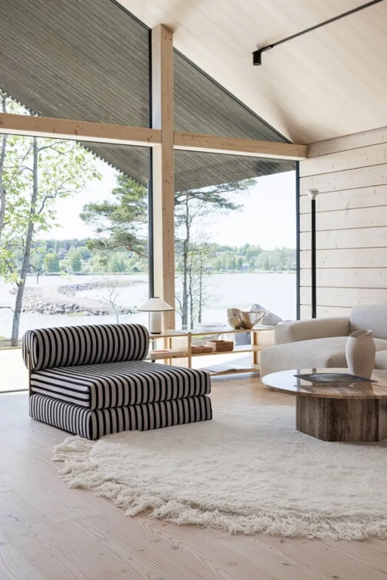 Mattan Arc från Woven Works ger ett charmigt intryck med sin oväntade runda form, lyxiga textur och livfulla blandning av nyanser. Arc har formgivits av Laura Seppänen och mattans mönster har skapats med hjälp av två olika lugghöjder: ena sidan har kort lugg på cirka 2 cm, medan lugghöjden på den andra sidan är lite högre och uppgår till 5 cm. Arc-mattan har vävts för hand av varm och mjuk nyzeeländsk ull, och det eleganta utförandet är kompletterat med okonstlade fransar som pryder mattan till hälften.