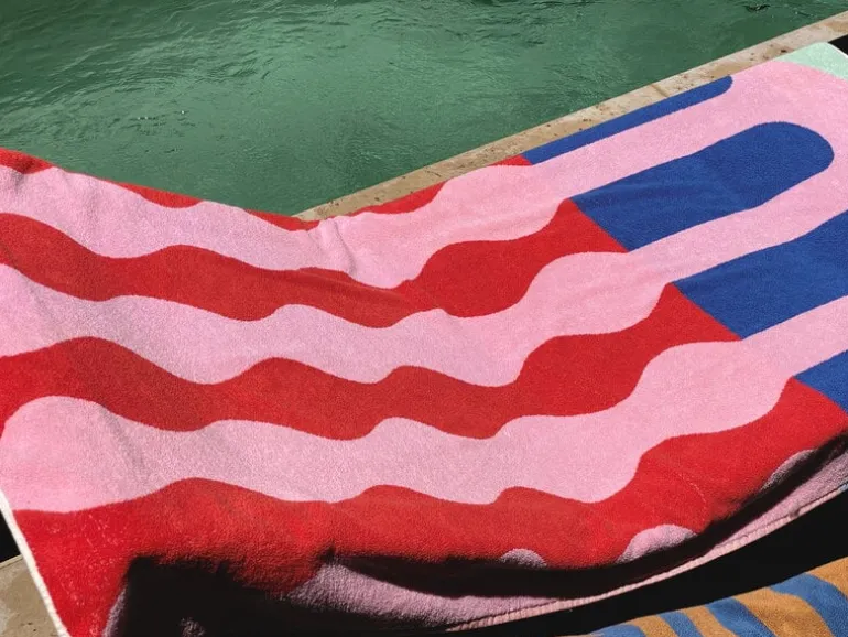 Handduken Santa Monica XL från ZigZagZurich är smyckad med livfulla färgtoner och ett grafiskt mönster som genast tar dig med till 60- och 70-talets bekymmerslösa somrar fyllda av fred och kärlek. Badlakanet har formgivits av Sophie Probst och är tillverkat av kvalitetsbomull, som torkar snabbt och känns underbart mjuk mot huden. Den lyxigt stora handduken är inte bara perfekt att använda hemma i badrummet, utan är också idealisk att ta med på picknicken eller när du ska ta dig ett uppfriskande dopp.